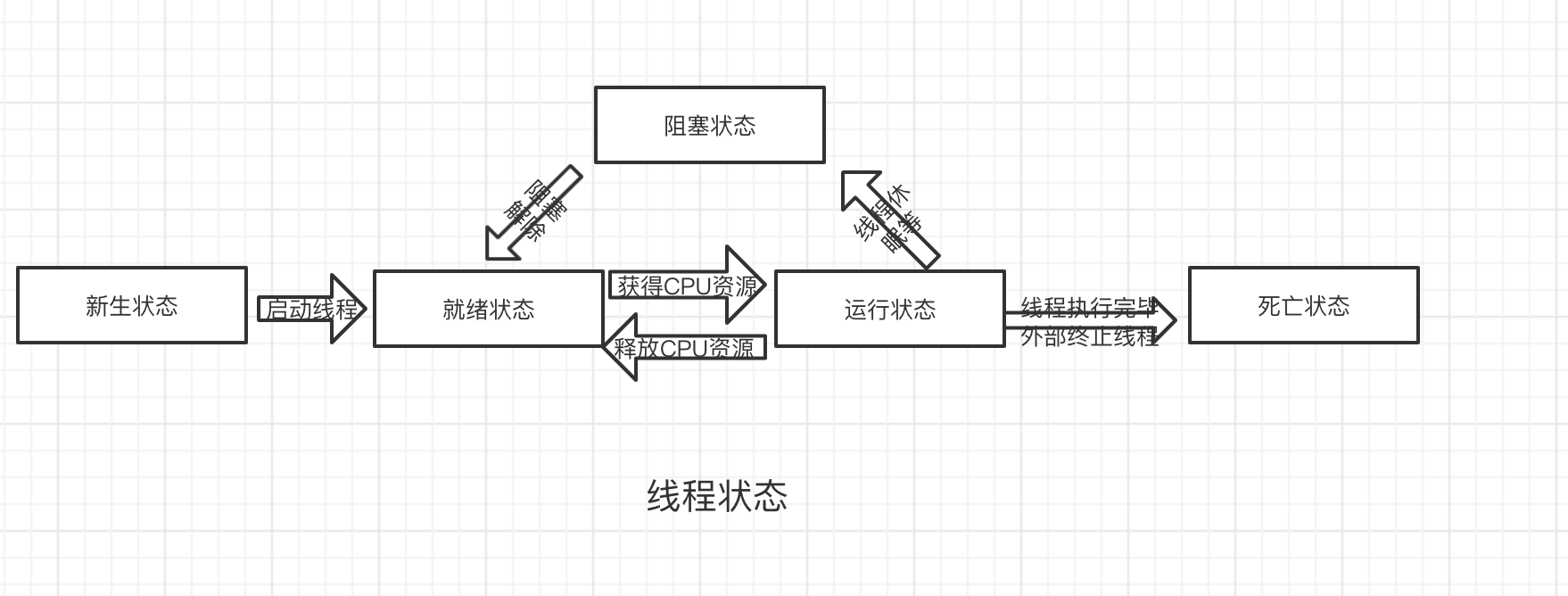 当调用sleep(),wait()或同步锁定等,线程需要等待唤醒或者需要等待别的线程释放锁定资源时,线程进入阻塞状态,就是代码块不往下执行,等待阻塞时间解除后,重新进入就绪状态,等待CPU调度执行。 - 死亡状态(Dead)