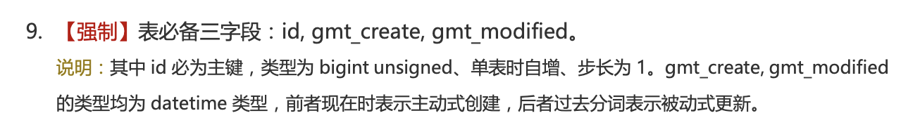 阿里巴巴开发手册中的mysql建表规约里有如下【强制】规范: