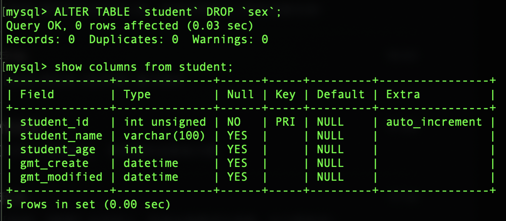 ALTER TABLE `student` DROP `sex`;