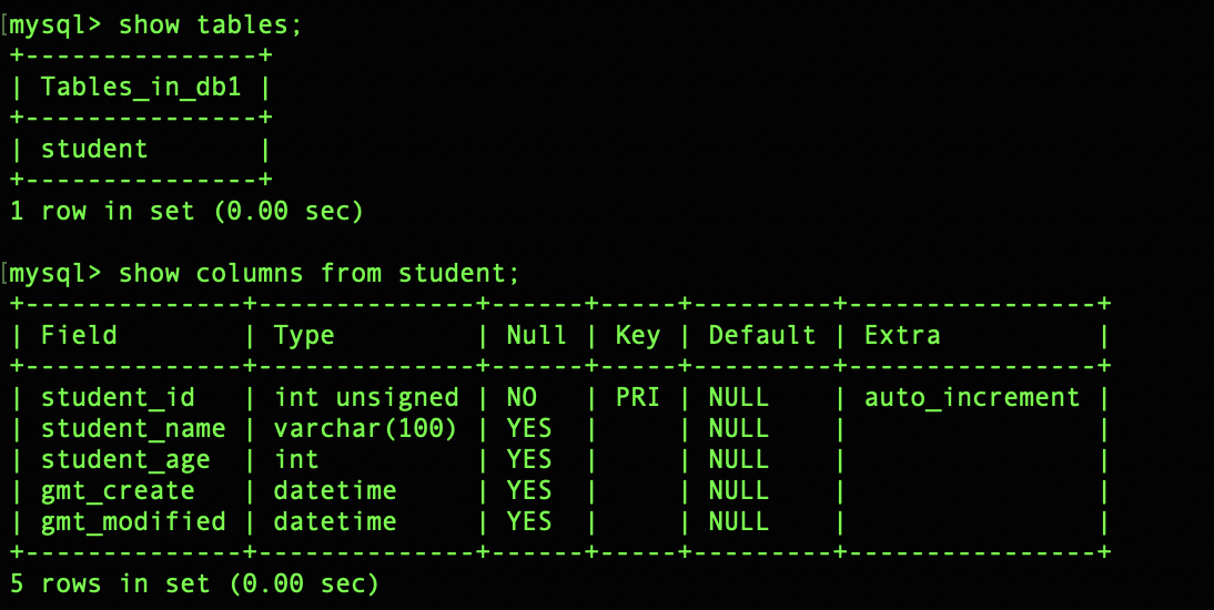 3.2 查看表结构(SHOW COLUMNS FROM table_name)