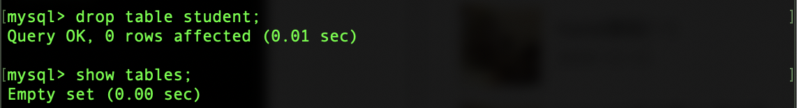 DROP TABLE student ;